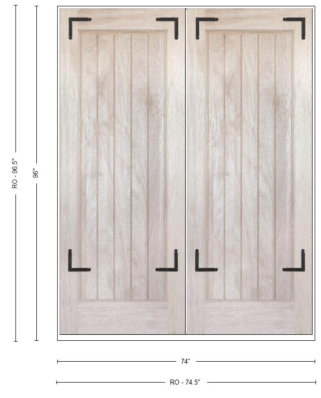 Rustic Mahogany Type Two Panel V-Groove Arch Top Solid Wood Exterior Door